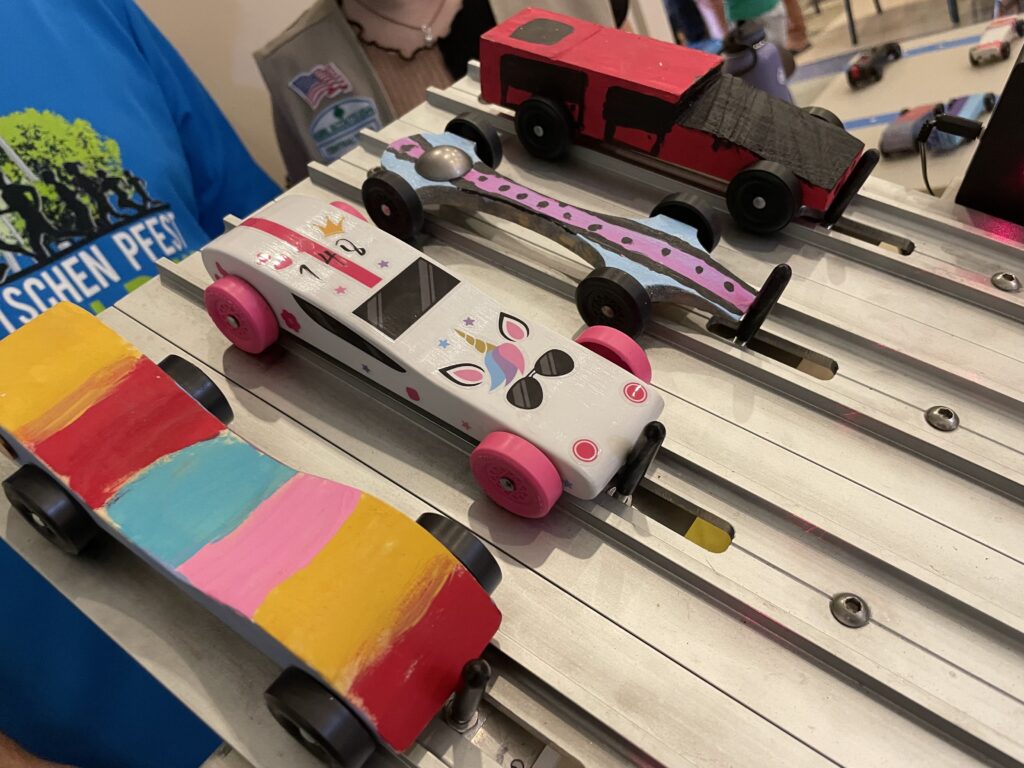 Bring back classic fun with pinewood derby cars ready to race. Guests can jump right into the action, enjoying fast-paced competition and cheering on their favorites.