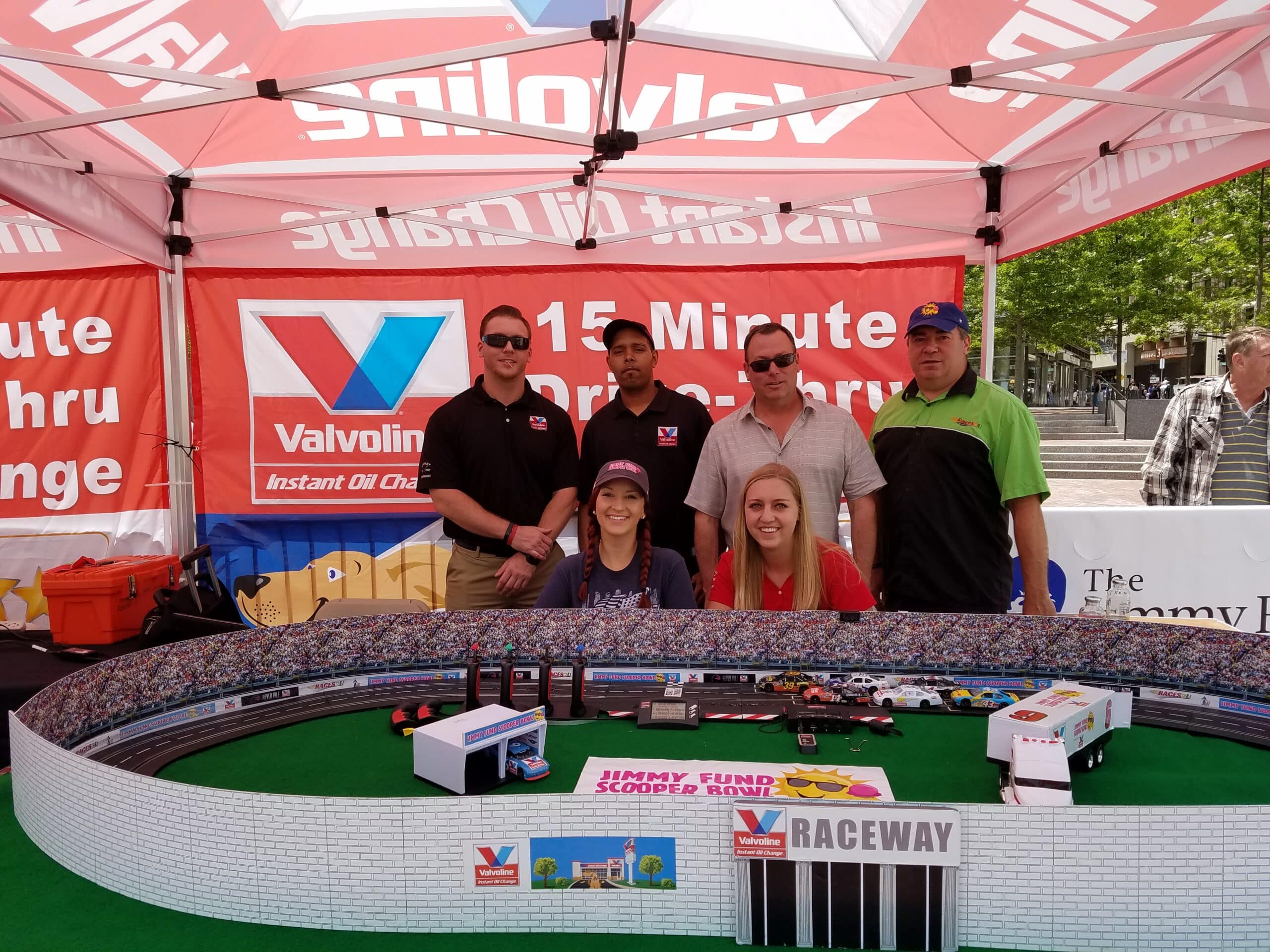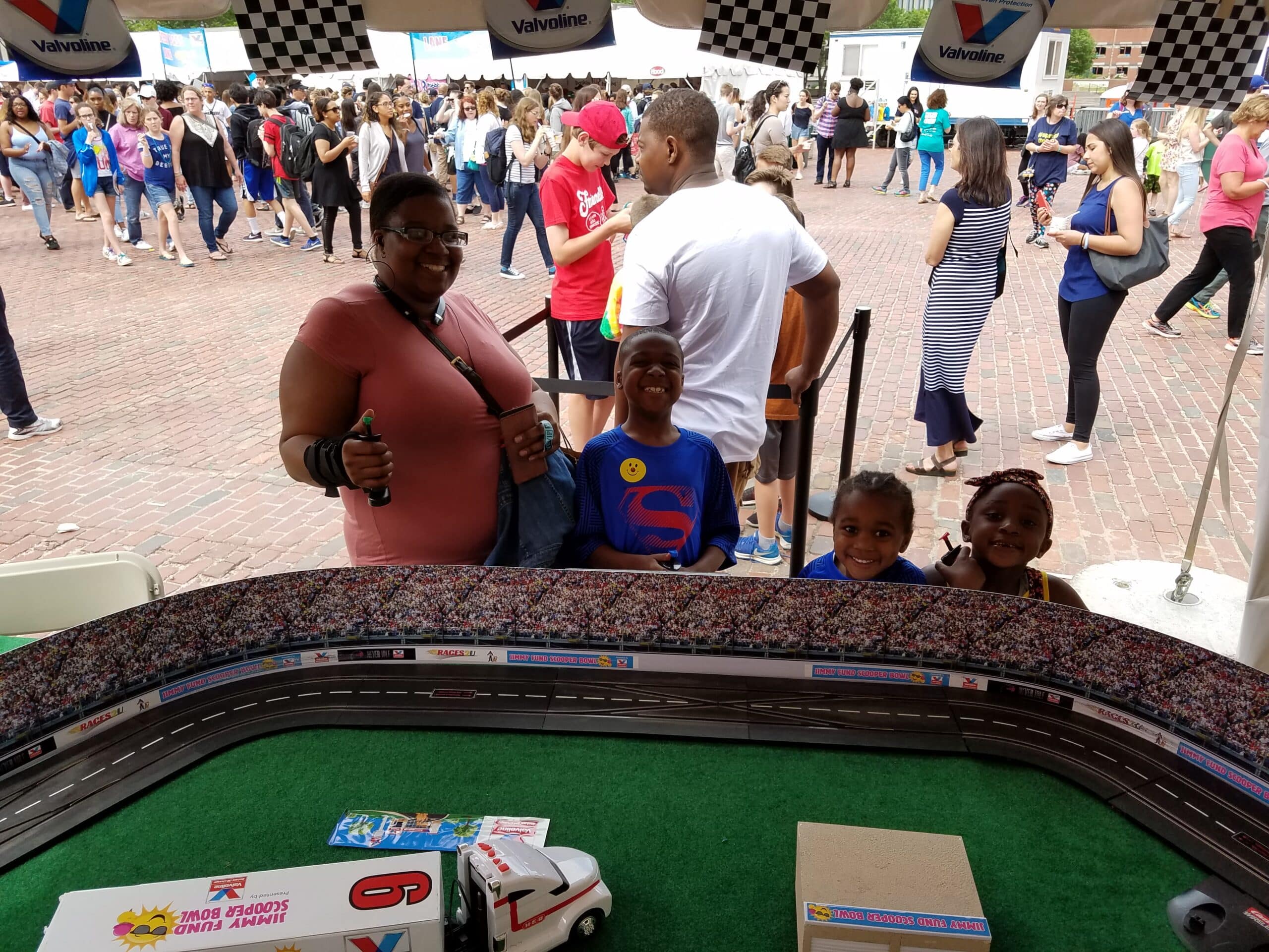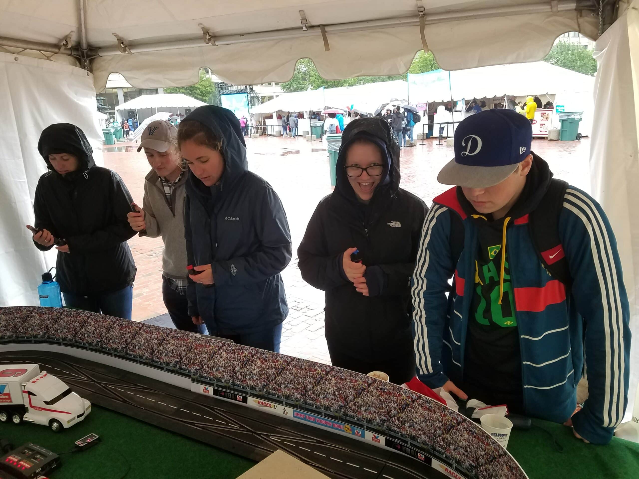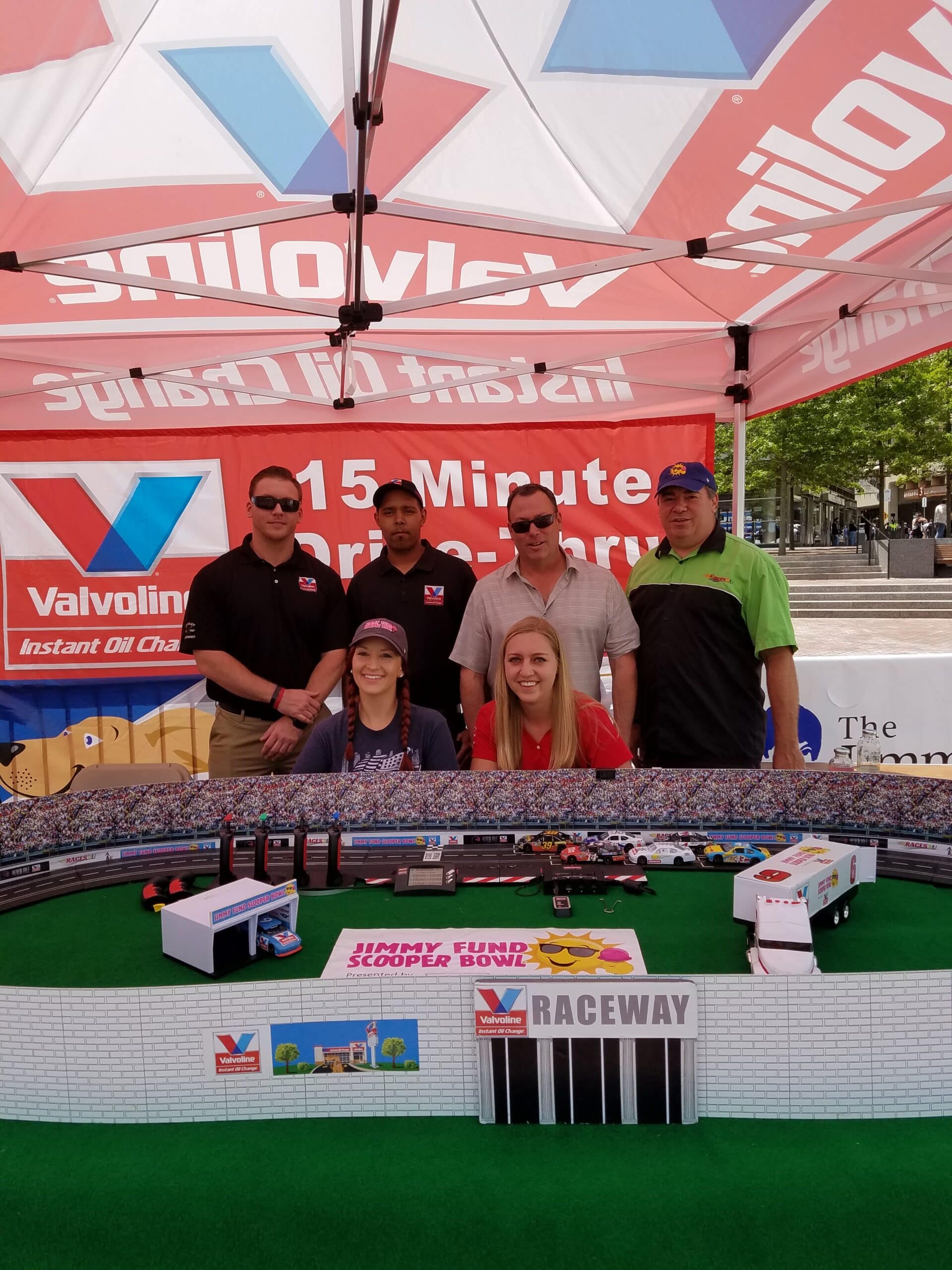Two things that go well together- slot car racing and ice cream! The Scooper Bowl Ice Cream Festival in Boston is the largest Ice Cream Festival in the US, and raises hundreds of thousands of dollars each year for the Jimmy Fund to search for a cure for children’s cancer. Thank you to our wonderful sponsor, Henley Enterprises Valvoline Instant Oil Change for the opportunity to participate in this fun and worthwhile event. While this year’s event got off to a cold and wet start on the first day, the beautiful weather and huge crowds over the next couple of days more than compensated for the slow beginning. Tens of thousands of people came out to enjoy samples of ice cream from companies like Baskin and Robins, Ben and Jerry’s, Breyers, Edys, Hood, and many more. One of our personal favorites was the frozen Greek Yogurt Bars from Yasso. Thousands of people raced on the two NASCAR tracks we set up, and Warren and Sky and the rest of the Valvoline team were helping kids of all ages race from noon to sundown for the three days of this event. Enjoy the pictures, and look for more on our Facebook page and video on Youtube (coming soon!).